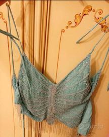 top a canottiera per danza del ventre e top con schiena aperta da portare anche fuori. Fusciacca usata in buono stato e gonna per danza del ventre taglia 46-48