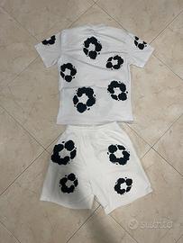 Completo sportivo bianco con stampa nera a macchie, composto da t-shirt e pantaloncini. Condizioni ottime senza segni di usura visibili. ⭐️ Condizione: 9/10 🎨 Colore: Bianco e nero 📦 Spedizione veloce e accurata