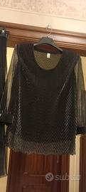 COMPLETO ELEGANTE X FESTE DI NATALE E CAPODANNO GONNA A PLISSE E MAGLIA DI COLORE GRIGIO LAMINATO NUOVO ABITO DA SARTORIA