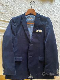 Completo da cerimonia, giacca e pantalone, in velluto colore blu.
