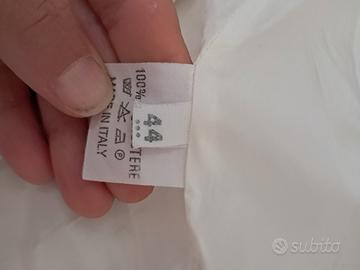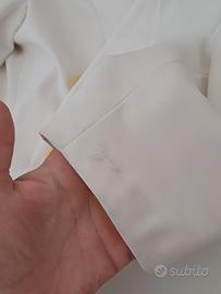 Abito/ Completo donna bianco composto da 3 pezzi in ottime condizioni solo il blazer presenta vicino ai polsini delle macchie scure ma se a qualcuno interessa si potrebbe piturare e cambiare anche il colore completamente per maggiori informazioni scrivetemi BLAZER larghezza spalle 40cm lunghezza totale 70cm larghezza da ascella ad ascella e di 50cm GILET larghezza spalle 34cm lunghezza totale 67cm larghezza da ascella ad ascella e di 48cm PANTALONI larghezza vita 35cm larghezza fianchi 48cm altezza dal cavallo alla vita 30cm lunghezza totale 100cm