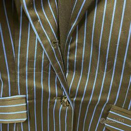 COMPLETO DONNA FLAVIO CASTELLANI NERO RIGHE BLU OTTIME CONDIZIONI BOTTONE MANCANTE TAGLIA 38/40