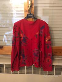 Vendesi completo invernale donna in lana composto da maglia con pailettes e gonna, fantasia a fiori colore rosso, taglia media