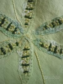 nuovo con cartellino, lino e ricamato con paillettes