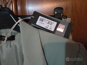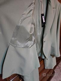 VERDE OLIVA TG 46 con cartellino e prezzo originale giacca con un solo bottone pantaloni con cerniera laterale
