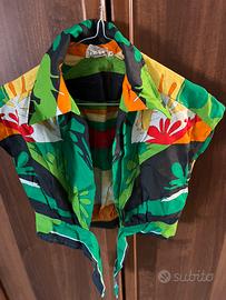 Completo donna con gonna lunga a portafoglio con allacciatura a nodo dieteo piu camicia corta con allacciatira in vita tipo blusa .VALDITERRE taglia S
