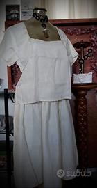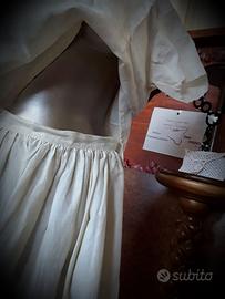 Blusa con manichetta ed ampia scollatura quadrata rifinita con applicazione uncinetto e perline. Abbottonatura sul retro.