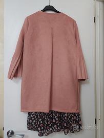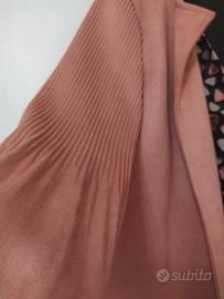 Giacca senza bottoni manica trequarti plissettata colore rosa