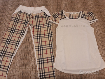 Completo T-Shirt + Pantaloni mai usati. La prima foto è solo per farvi vedere come vestono. L'etichetta interna riporta una taglia M ma consideratela una taglia S/M. Il tessuto a quadri credo sia di cotone mentre la stoffa bianca invece è più morbida e si adatta. Elastico in vita.