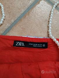Set due pezzi composto da una gonna ed un top in tweed rosso e azzurro. Taglia XS. Ottima vestibilità. Il top ha le spalline in finte perle rimovibili. Utilizzato una sola volta
