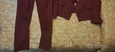 Completo elegante bordeaux donna blazer + pantalon