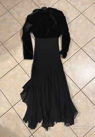 Vendo completo elegante da donna firmato CANNELLA Abito lungo con corpetto in velluto e gonna morbida a balze. Giacca corta in velluto coordinata Taglie: 42 (abito) e 44 (giacca) Colore: nero Condizioni: ottime, usato pochissimo Ideale per cerimonie, eventi, serate eleganti. Il completo veste in modo raffinato e valorizza la figura grazie al contrasto tra velluto e tessuto leggero della gonna. Prezzo:55€ trattabili