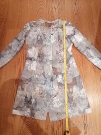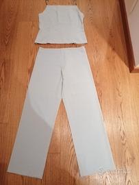 Completo elegante per cerimonia cucito a mano composto da top, pantalone e giacca leggera con motivo floreale trasparente. Veste circa una taglia 46