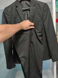 Completo elegante nero della Kiabi formato dalla giacca slim fit taglia IT 56 e dai pantaloni regular fit taglia IT 46.
