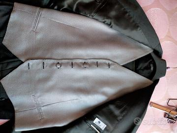 Completo elegante uomo, giacca pantalone e panciotto. Grigio scuro ( colore foto dei pantaloni), Pura lana vergine, ginalebole. Panciotto in seta, possibilità di venderlo separatamente dal completo.