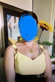 completo elegante di marca Henriette: composto da vestito a sottoveste con spalline gioiello lunghezza gonna appena coperto il ginocchio corpino giallo con dietro elastici nella stoffa per dare ottima vestibilita' .