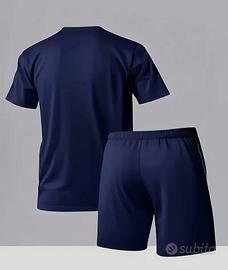 Completo estivo uomo t-shirt manica corta e pantaloncini casual, comodo e traspirante, design con stampa Blauer USA - 2 pezzi.
