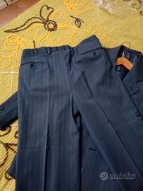completo Uomo Fiorani color Blu chiaro pura lana vergine motivo righe misura giacca spalla 42 manica 60 lunghezza 75 cm misura pantaloni lunghezza 90 vita 82