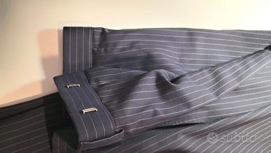 Vendo ad euro 55,00 completo blu con righino rosa Hugo Boss collezione super 120 Pantaloni con tasche avanti e dietro (con bottoni )su entrambe le gambe Aggiungo pochette da taschino rosa Taglia 48