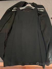 Completo elegante in fresco di lana gessato (nero/beige) composto da soprabito con bottone di chiusura e tubino sbracciato con scollo quadrato. Usato una sola volta - Taglia 44
