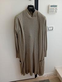 completo giacca con abito a maniche cortein lana, giacca lunga come il vestito abito con particolare motivi sotto, molto fashion