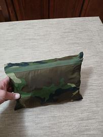 Come nuovo, mai utilizzato con apposita confezione anch'essa impermeabile, completo giacca e pantaloni cerati antipioggia tipo militare adatto per cacciatori.