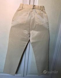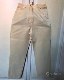 Vendo completo giacca e pantaloni elegante, colore giallo chiaro, tessuto in cotone lucido, giacca tg.46 e pantalone modello jeans tg.44 .