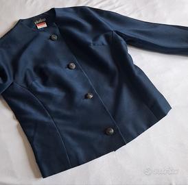 Elegante completo blu misto lana, composto da giacca corta con manica 3/4 e tubino entrambi completamente foderati tg. S