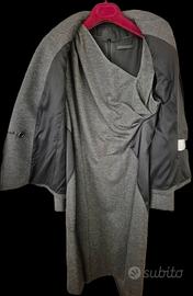 completo misto lana giacca-vestito Pinko. Grigia sia la giacca che il vestito, misto lana con inserti neri sui fianchi. Taglia 44