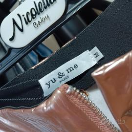 giubbetto nero con profili oro leggero e pantaloni oro felpati