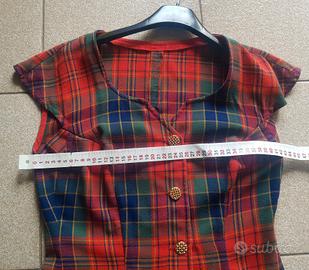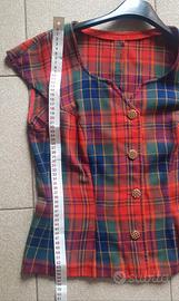 Set coordinato composto da gonna e blusa con fantasia scozzese, sartoriali - Blusa sartoriale con scollo a V e maniche corte. - Gonna a tubino.