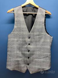 Elegante tris giacca+gilet+pantalone H&M in raffinato tessuto grigio quadrettato.
