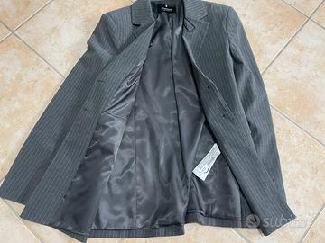 Vendo sia la giacca che i pantaloni. Scrollate per vedere meglio. La giacca è XS mentre i pantaloni sono taglia 32. Viene anche con una cintura nera. Per qualsiasi info contattatemi !