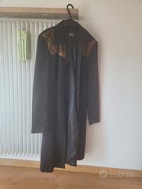 ✨ Cappotto nero lungo con inserti leopardati