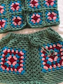 Completo donna in lana gilet è pantaloncini realizzati a mano Taglia s/m