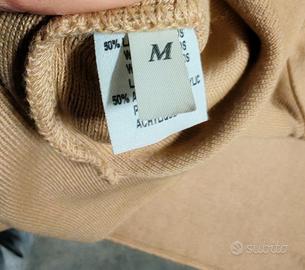 Completo Ella Lú composto da gonna lunga e maglia ampia in misto di lana merinos di colore sabbia