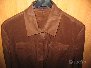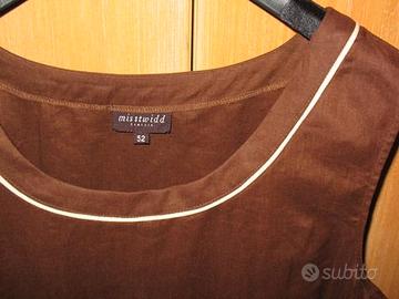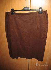 Completo tre pezzi donna originale Misstwidd, gonna, top e giacca, 100% lino, colore marrone, top profilato in lino beige, gonna profilata in lino beige, con piccole pieghe su lato posteriore, taglia 52, mai indossato, nuovissimo, vendo euro 60
