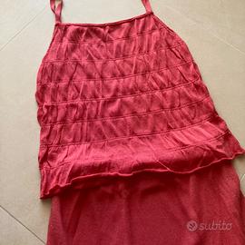 Vendo completo romantico in maglia di un bellissimo color fragola, composto da gonna lunga morbida (foderata), top con maniche sottili dalla particolare lavorazione e giacca manica lunga con bottoncini (alcuni un po' lenti e quindi da stringere). Super romantico leggermente retrò prezzo piccolissimo