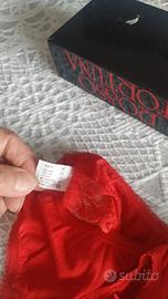 Completo "Rosso Fortuna" intimo taglia 3/M slip e reggicalze rosso che si usa regalare a Natale. È in puro cotone ed ha un pizzo meraviglioso e sul reggicalze ha ,,2 perline a dx e 2 a sx. Mai usato ed ancora nella scatola di confezione
