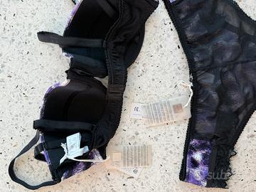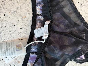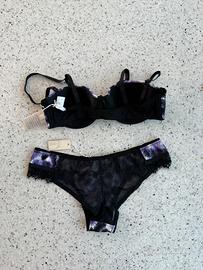 Completo intimo Just Cavalli fantasia leopardata nella colorazione nera, bianca e viola.