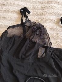 completo intimo donna con canotta ricamata semi trasparente e perizoma con strass nero. Sensuale elegante elasticizzato