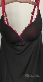 - Top con spalline sottili e dettagli in pizzo rosso.
