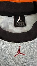 Completo Nike Jordan anni ‘80, maglia e pantaloncini in ciniglia taglia M ma veste abbondante, indossati un paio di volte. La maglia è un bellissimo azzurro, che in foto non rende. Introvabili in queste condizioni.