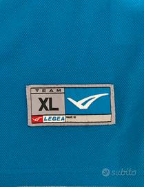 Vendo completo tecnico della LEGEA, taglia XL. Il set è composto da maglia a maniche lunghe con polsini elasticizzati e pantaloncini abbinati, tutto in un vivace colore azzurro con dettagli bianchi.