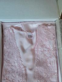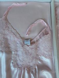 Bellissimo completo camicia da notte e vestaglia color rosa, taglia 46 nuovo con scatola