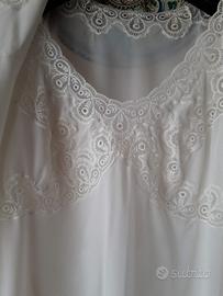 Camicia da notte e vestaglia corte, colore bianco. Arricchite da un preziosissimo merletto che le rende molto eleganti e raffinate. Completo mai usato, senza etichetta, lunghezza al ginocchio, misura 4°.