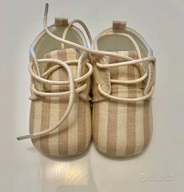 Completo lino beige Mayoral con pantaloni e camicia di lino, bretelle, papillon e scarpe.