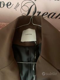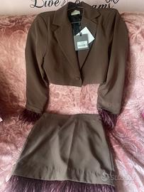 Completo Lumina Marron Tg M veste 42/44 , nuovo con cartellino, composto da Giacca Crop e minigonna con piume che si possono anche togliere
