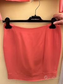 Completo elegante composto da giacca e gonna in un vivace color corallo, perfetto per cerimonie, occasioni speciali o look da ufficio raffinati.