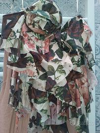 Bellissimo top che si allaccia al collo con rosa dai toni delicati ed eleganti completo di un pantalone a palazzo rosa antico. Indossato solo una volta per una cerimonia.